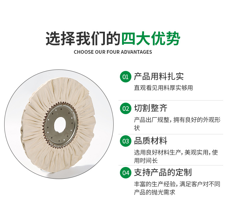 麻輪 劍麻輪 麻輪廠 拋光麻輪 麻輪布輪 拋光布輪 布輪 麻布輪采用高強(qiáng)全樹(shù)脂砂布為原材料,使用高強(qiáng)粘度樹(shù)脂膠,產(chǎn)品質(zhì)量穩(wěn)定,外觀美觀。適用行業(yè)非常廣泛,可用于各類金屬、非金屬產(chǎn)品表面研磨、拋光。